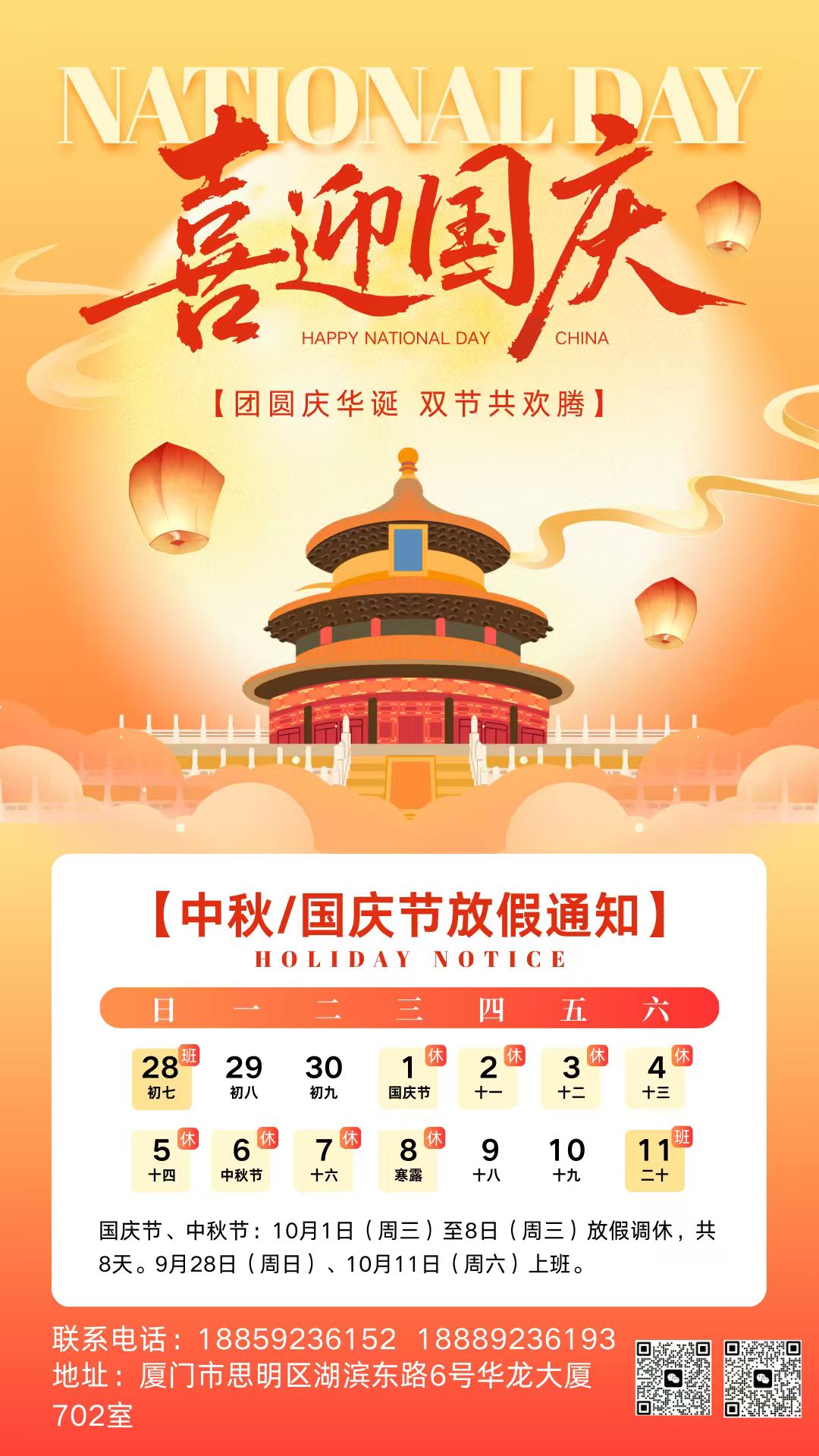 放假时间:10月1日至10月8日,10月9日正常上班。2025-09-28