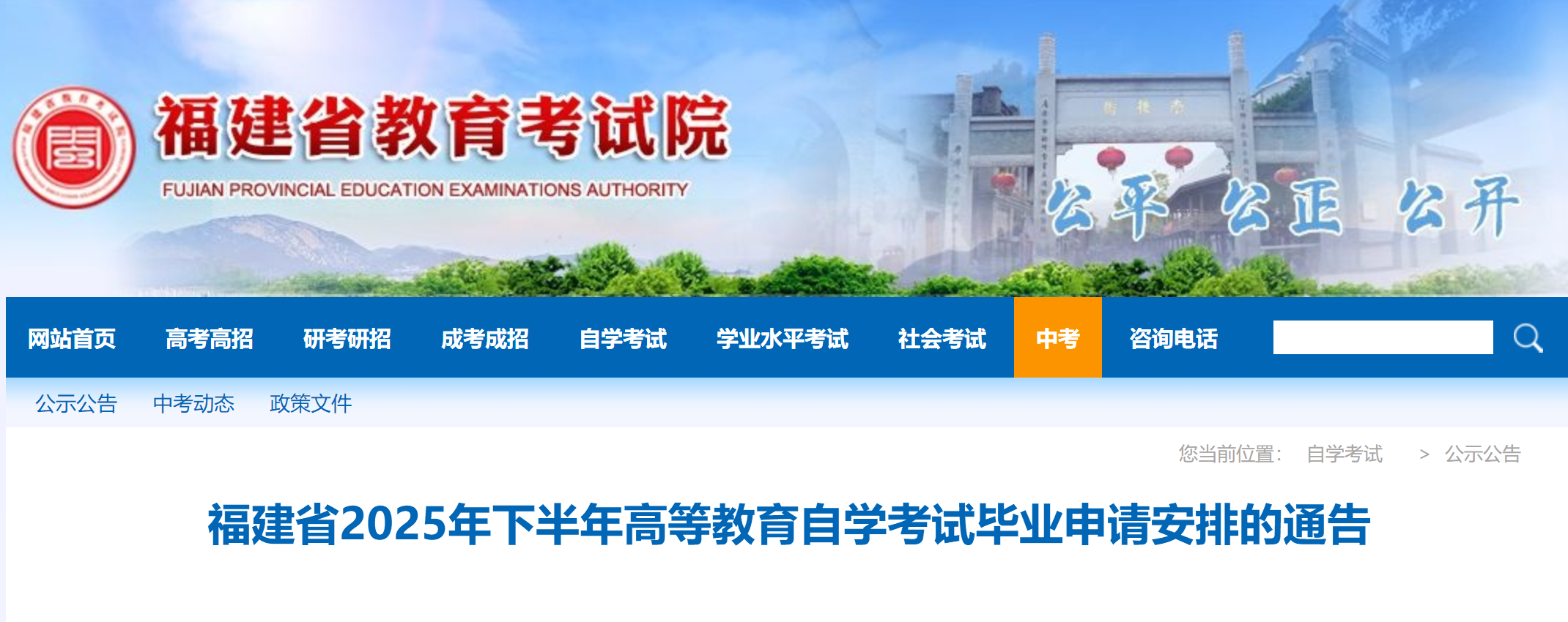 为做好福建省2025年下半年高等教育自学考试毕业申请工作,现将有关事项通告如下: